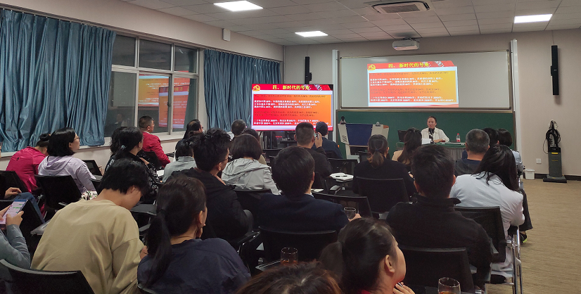 主题党日由华北科技学院艺术系党总支书记房居清同志采用主题报告的形式进行。报告以《北方吹来十月的风》、《南湖的船、党的摇篮》,《团结就是力量》、《七律人民解放军占领南京》,《歌唱祖国》、《祝酒歌》,《希望的田野上》、《归航》、《不忘初心》等15首经典流传、脍炙人口的主旋律歌曲,通过“开天辟地听惊雷”、“血与火的洗礼”、“东方的曙光”、“新时代的号角”等四个部分讲述中国共产党团结带领人民前赴后继、顽强奋斗,取得革命、建设、改革的伟大胜利,从根本上改变了中国人民和中华民族的前途命运,实现自立于世界民族之林,迎来中华民族伟大复兴的光明前景的历史征程。报告形式新颖,视阈极具创新性。用音乐艺术的巨大穿透力、感染力以及创作、演绎上述作品艺术家的崇高品格和奉献精神昭示我们:没有共产党就没有新中国,只有社会主义才能救中国,只有中国特色社会主义才能发展中国。或昂扬或优美的旋律唤起了在场党员同志们对伟大的中国共产党领导伟大的中国人民实现伟大中国梦的初心和使命的强烈共鸣和责任意识。报告在全体党员情不自禁、发自肺腑、热血澎湃地高声齐唱《没有共产党就没有新中国》中结束。报告结束之后党员们开展了深入友好的交流和讨论,三个基层党组织负责同志就基层党组织共建达成初步共识。