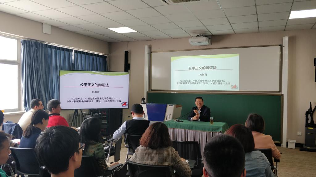 4月18日下午,中国社科院哲学所副所长、马工程专家、中国历史唯物主义学会副会长冯颜利教授应beat365在线唯一官网邀请来beat365做题为“公平正义的辩证法”的学术报告。beat365在线唯一官网全体教师和部分研究生参加报告会。